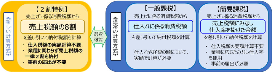 3割特例が適用できる期間であっても、事業の状況によっては既存の「簡易課税制度」のほうが、税負担は軽くなるケースがあります。簡易課税制度では、業種ごとに「みなし仕入率」が定められており、それによって納税額が決まります。
