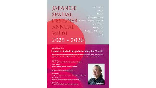 一般社団法人 日本空間デザイナー支援機構は、『日本の空間デザイナー年鑑Vol.01』(発売:アルファ企画)を発行。2025年4月15日(火)に全国の書店およびAmazonにて発売。本書は、日本の優秀な空間デザイナー90名を紹介し、詳細情報を国内外に発信すべく編纂されたもの。刊行記念特集は「世界に影響を与える日本の空間デザイン」と題し、空間デザイナーの橋本夕紀夫について、角倉小百合(橋本デザインスタジオ)が語る。